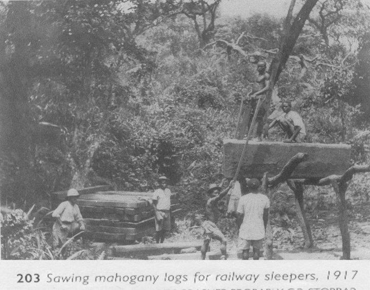 تقطيع اخشاب المهوقني من اجل استخدامها لبناء خطوط السكة حديد عام 1917م