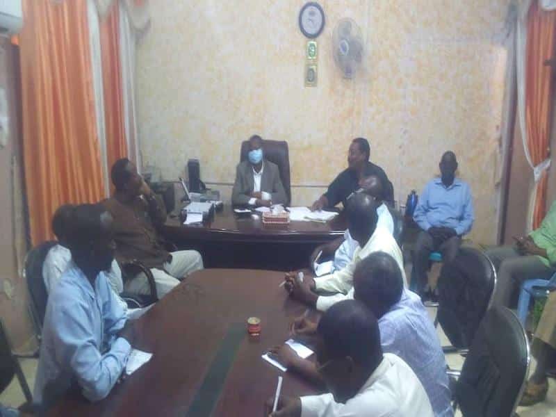 رأس المدير العام لوزارة المالية والقوي العاملة الوزير المكلف بولاية النيل الأزرق حسن عبدالمجيد خليفة بمكتبه امس الاجتماع المشترك مع وفد اللجنة التسيرية لنقابة المعلمين.