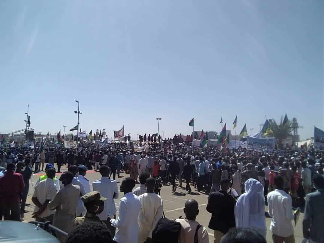 إحتشدت أعداد كبيرة من المواطنين بساحة الحرية رغم الإحترازات الصحية لجائحة الكرونا، للإحتفال بتوقيع السلام وإستقبال قيادات أطراف عملية السلام التي تعتبر إضافة حقيقية للسلام واستقرار البلاد ايذاناً بالبدء الفعلي لتنفيذ إتفاق السلام علي أرض الواقع.