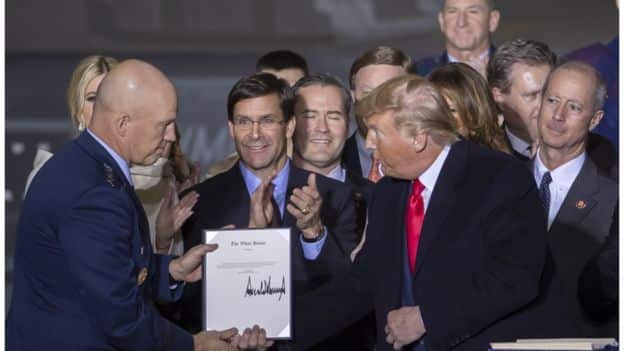 اعتمد الرئيس الأمريكي، دونالد ترامب، رسميا تمويل هيئة عسكرية جديدة مختصة بالفضاء تحمل اسم “قوة الفضاء الأمريكية”.