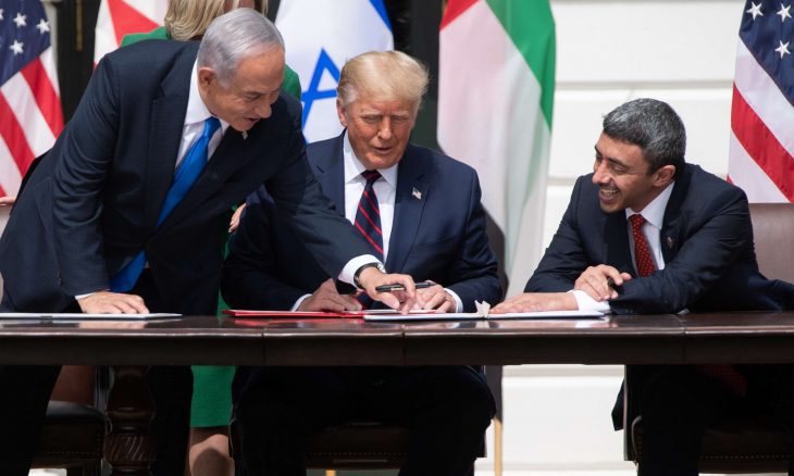 وفي 15 سبتمبر/ أيلول، وقعت الإمارات والبحرين اتفاقي تطبيع كامل لا للعلاقات مع إسرائيل في حفل رعاه الرئيس الأمريكي دونالد ترامب في البيت الأبيض.