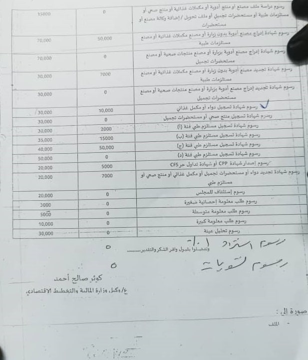 #مثلا زياده رسوم تسجيل المستلزمات الطبي البسيط من ٢ الف الي ٣٠ الف . (ونقول لي مافي سماعه ولا ميزان ضغط متوفرة للطبيب)