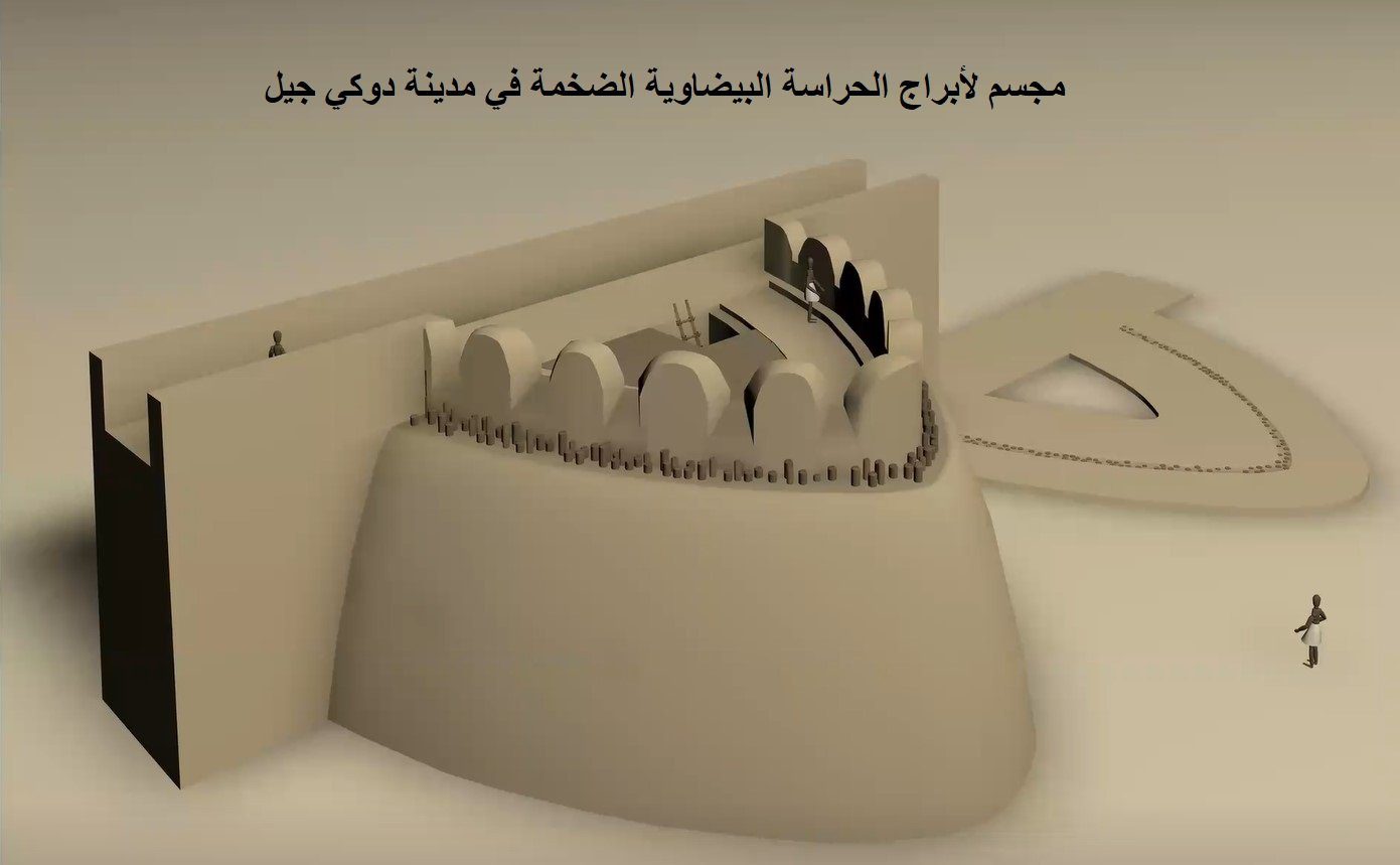 عرّج بروفيسور بونييه على إكتشاف مذهل آخر و هو مدينة دوكي جيل التي قرر التنقيب فيها بالتعاون مع الأستاذ صلاح الدين محمد أحمد ، مدينة دوكي جيل أو ما يمكن تسميتها بالمدينة البيضاوية (حسب ترجمة كاتب هذه السطور) هي موقع أثري لمدينة ذات طابع معماري فريد لا يوجد مماثل له في الحضارات الإنسانية المعروفة حيث أن كل المباني و المعابد و القصور الموجودة في هذه المدينة مبنية بحوائط إما دائرية أو بيضاوية و قلما توجد أشكال هندسية مربعة أو مستطيلة و الموجودة كانت تشير إلى حقبات سيطرة الفراعنة المصريين على جزء من المدينة حيث بنوا معابدهم طبقاً للعمارة المصرية القديمة ، مدينة دوكي جيل تبعد حوالي كيلومتر واحد إلى الشمال الشرقي من مدينة كرمة ، و خلال السنوات الماضية تم إزالة طبقات من الأتربة عن المدينة بدقة شديدة ، طبقة وراء طبقة حيث كشفت الرمال عن كنوز أثرية تتكشف للعيان مع إزالة كل طبقة من الأتربة كما ساعدت البعثة البولندية بالتصوير بتقنية الجيومورفولوجي على الكشف عن التصميم العام للمدينة المدفونة و مبانيها الدائرية و البيضاوية ما يعني أنه على بعد 700 متر من مدينة كرمة قامت مدينة بشكل و عمارة مختلفين كلياً عن عمارة مدينة كرمة المتاخمة. وضّح البروفيسور عبر مجسمات أبراج الحراسة البيضاوية التي استخدمت في حماية المدينة، و بيّن أنها كانت أبراج عملاقة بمسافات متباعدة من حائط حماية المدينة الذي يبلغ سمكه 6 أمتار هذه الأبراج بنيت قبل 3 إلى 4 ألف عام و أعيد بنائها عدة مرات و لا يوجد لها مثيل في أي بلد من بلدان حوض النيل.