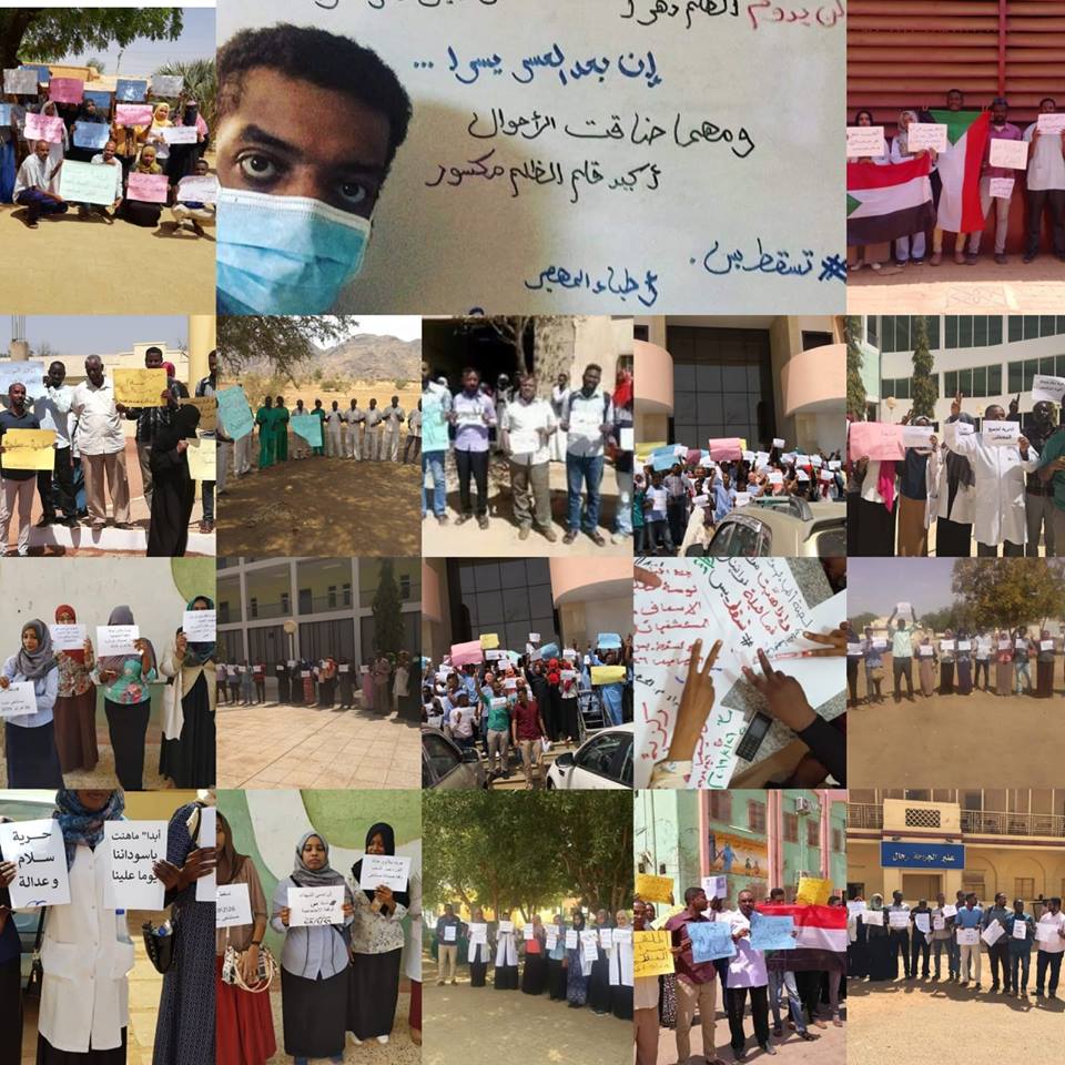 فيما نفذ طلاب رابطة قرية بكية بولاية الجزيرة وقفة احتجاجية داعين الطلاب إلى تنفيذ إضراب في كل الجامعات التي لازالت تفتح أبوابها.