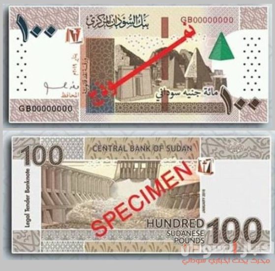 كشف بنك السودان المركزي عن شكل العملة الجديدة فئة الـ (100) جنيه والتي سيتم طرحها خلال الأيام القليلة القادمة موضحاً محتوى المئة جنيه حيث أن لونها الأساسي بنياً وتحمل البناء الحضاري وصورة الإهرامات وصورة سدود.