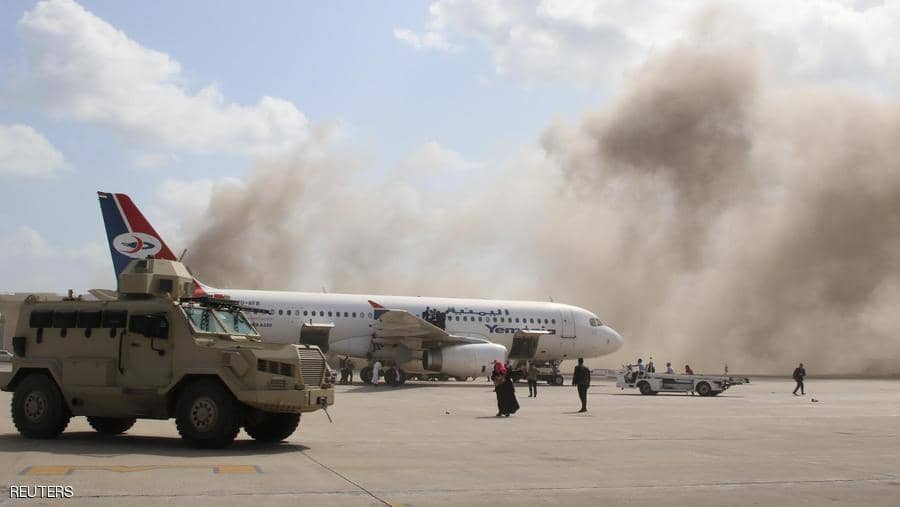 وأكد المسؤول اليمني في تغريدة أخرى أن “المعلومات الأولية تشير إلى أن الحادث الإرهابي الغادر والجبان الذي استهدف مطار عدن تسبب في سقوط شهيد ونحو 10 جرحى من الإعلاميين الذين حضروا لتغطية وصول الحكومة إلى مطار عدن”.