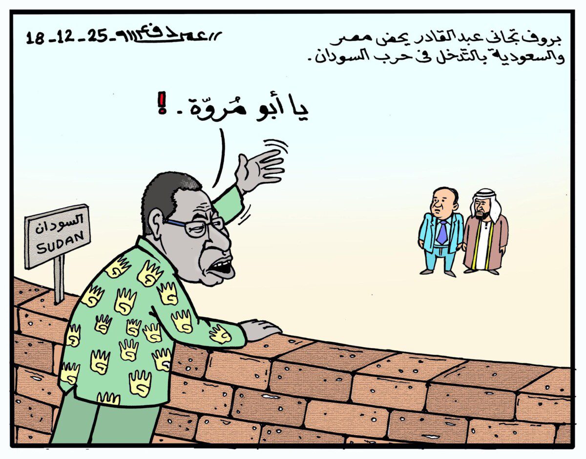 بروف تيجاني عبد القادر يطالب مصر والسعودية بالتدخل.. كاريكاتير عمر دفع الله