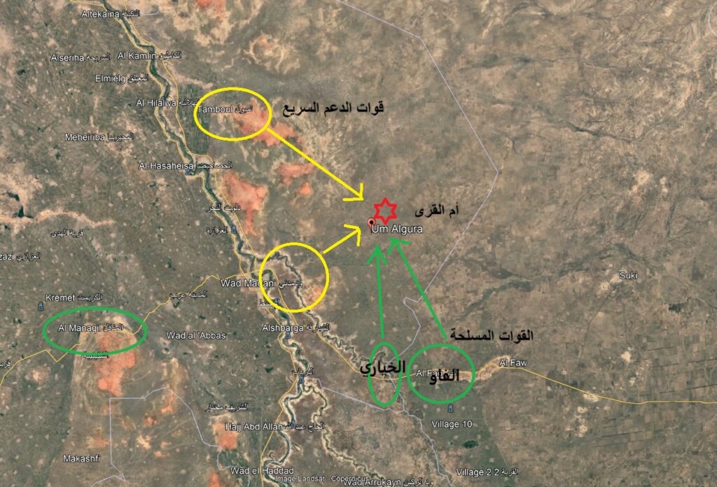 في صبيحة يوم 2 ديسمبر 2024، تحركت قوة عسكرية من الجيش وبرفقتها قوة كبيرة من قوات الكفاح المسلح من منطقتي الفاو والخياري في اتجاه أم القرى الواقعة على بعد 45 كيلومتر إلى الشرق من مدينة ود مدني.