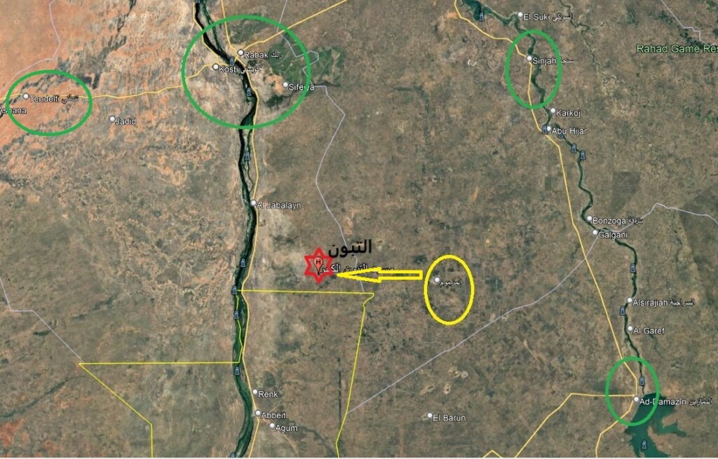 المنطقة الوحيدة التي كان فيها زمام المبادرة العسكرية لقوات الدعم السريع في يوم 2 ديسمبر 2024، هي منطقة التبون في ولاية النيل الأبيض.