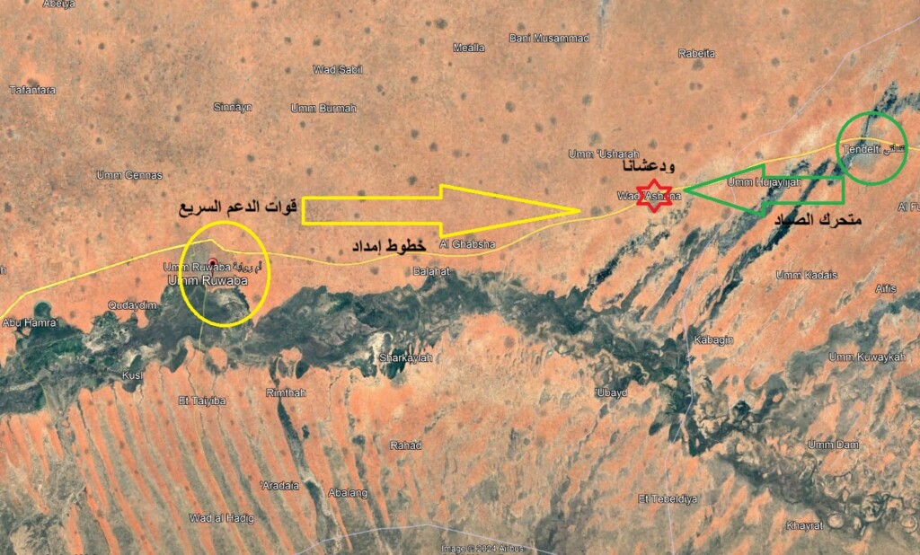 بالمقابل، تحركت قوة اسناد من قوات الدعم السريع من مدينة أم روابة لتعزيز القوة المتمركزة في ودعشانا (45 كيلومتر)، وتحركت قوة أخرى من منطقة العباسية لقطع الطريق أمام تقدم متحرك الصياد نحو أم روابة.