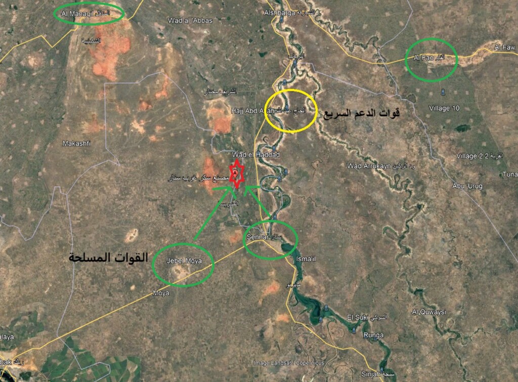 وتحركت قوة الدعم السريع التي هاجمت المنطقة من منطقتي الدالي والمزموم التي تجمعت فيها قواتها التي انسحبت من ولاية سنار بعد معارك الدندر وسنجة.