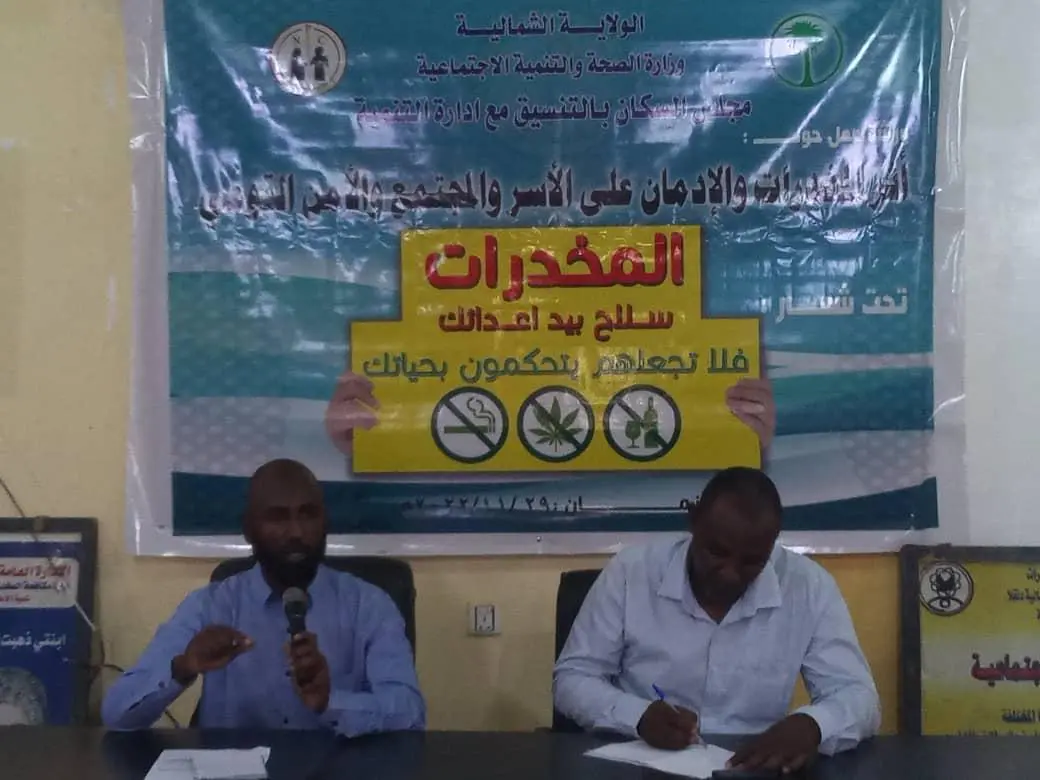 نظم مجلس السكان بالتنسيق مع إدارة التنمية بوزارة الصحة والتنمية الاجتماعية بالولاية الشمالية، ورشة بعنوان أثر تعاطي المخدرات والادمان علي الاسر والمجتمع والامن القومي.