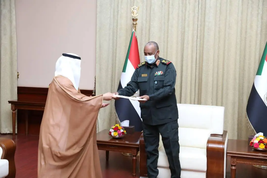 واكد رئيس مجلس السيادة، خلال لقائه بمكتبه بالقصر الجمهوري اليوم، السفير الإماراتي بالخرطوم حمد بن محمد حميد الجنيبي، الذي سلمه دعوة رسمية من خليفة بن زايد آل نهيان رئيس دولة الإمارات العربية المتحدة لزيارة الإمارات، بحضور وزير الخارجية المكلف السفير علي الصادق، أكد متانة وعمق العلاقات بين البلدين.