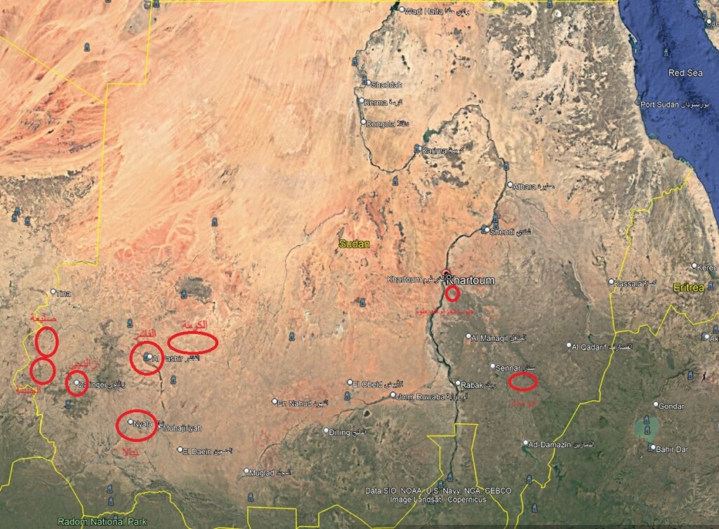 وبحسب مقاطع الفيديو التي نشرها موالون للجيش فإنه تمكن من السيطرة على برج زين ومسجد الشهيد وإدارة الكهرباء والمياه بالمقرن منذ بداية الاسبوع بينما تتمركز قوات الدعم السريع في بنك السودان وبرج الساحل والصحراء بالاتجاه المقابل.
