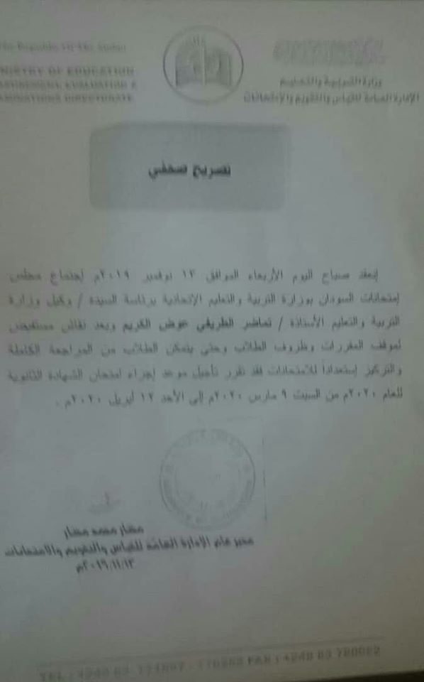 تأجيل امتحانات الشهادة السودانية