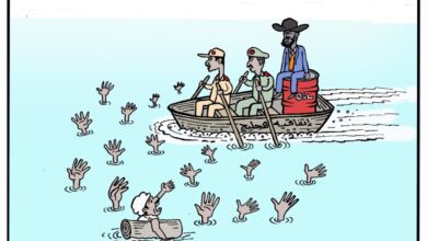 معاناة السودانيين مع الحرب ومشاكل اللجوء .. كاريكاتير عمر دفع الله